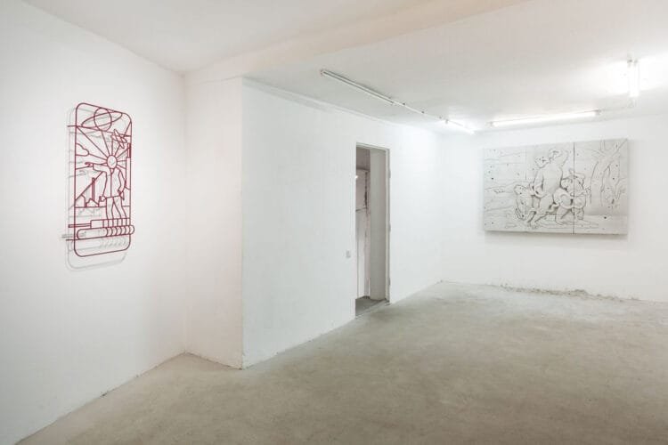 The works of Dan Beudean and Hortensia Mi Kafchin reveal an exploratory side, perhaps even one of chance, coincidence, superstition, and projection, seen by some cultures as magical instruments, but which can generate a theoretical framework for various practices and disciplines. Alexandra Boaru develops the relationship of care and symbiosis with nature, highlighting the inner magical quality of the environment. In a similar manner, Marina Sulima’s drawings reflect the idea of innovation as an act of attention, effort, and community care, exploring the relationship between the artist, community, resources, and environment. The works of Marina Oprea and Vincent Gallais, perhaps inspired by the “stoned ape” theory, investigate the connection between psychedelic mushrooms and the possibility of speculating and accessing a higher consciousness.