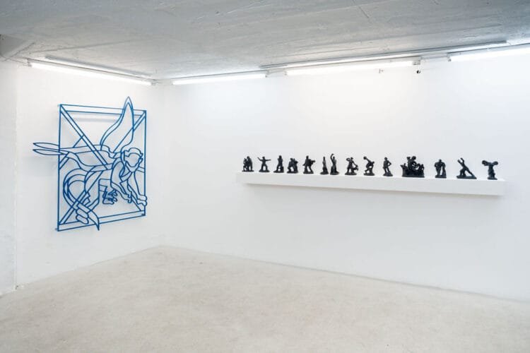 Perhaps religion, Machiavelli, or even algorithms show us how control and manipulation take various forms over time. What remains unchanged, despite various strategies of representation, methods of storytelling, or the formation of personality cults, is the essence. History finds its expression and is reiterated in art, predominantly through allegorical forms. Through sculpture and objects made of inexpensive materials, Vlad Olariu accesses ideas and forms from the ancient world, reminding us of the decadent nature of society at that time—or perhaps of society today. His artistic practice focuses on analyzing the power structures that shape social reality. Authority is simultaneously glorified and dismantled. The works in the “TAIL END” exhibition question how systems of domination continue to evolve, influence, infiltrate, and infuse the dynamics of communities, amounting to more than a question but less than an answer.