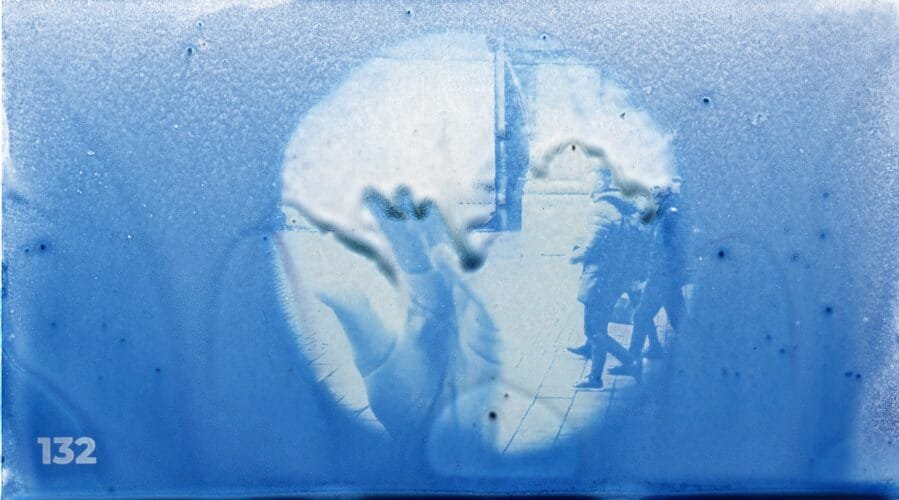 On the other hand, in The Blue Room, the remediation went in a different direction – here, the digital medium is translated back to the origins of photography, through cyanotype on glass. This move is not only technical, but declarative: the digital image is objectified, made tangible, in order to assume a manifestation of remediation that I find very important: hypermediality, an essential concept in media theory, of assuming the medium itself, the interface. I wanted to draw attention to the palpable presence of the medium, inviting the audience to experience not only the content, but also the medium itself, which is an integral and presumed part of the system.