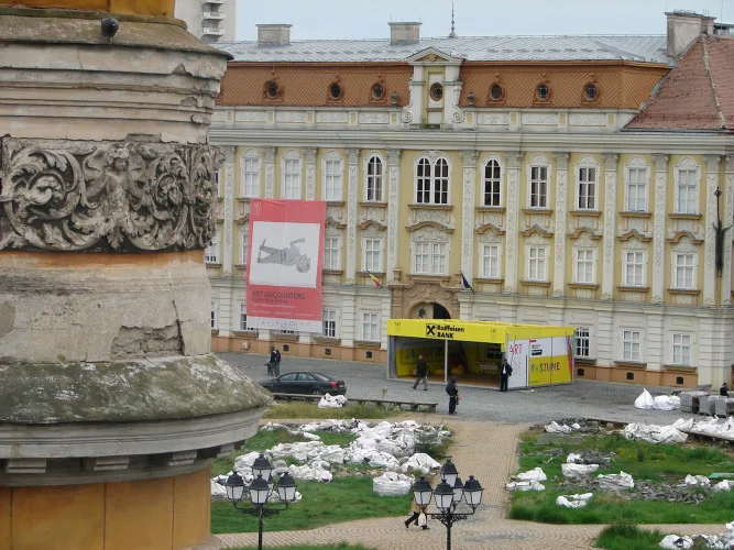 But the destructive power of Art Encounters goes beyond profession. An important and spectacular part of the project was setting up Cazarma U, with an architecture contest being held. Cazarma, which was sold by the city to businesswoman Mioara Smicelescu, was left in disrepair for years because the plans to turn it into a luxury hotel or a mall were foiled by the building’s monument status. For Art Encounters, the building was cleaned by the inmates from the city penitentiary, and the space was used by 12 commercial galleries from all over the country that would pave the way for the building’s conversion. First the artists, then the business. A few years ago, the space was used by a group of homeless people, but now that they’ve been kicked out, the media celebrates that fact that the ruin no longer hosts bums, but art instead. (The complicit work between municipality and capital doesn’t stop here. The Dermatology Clinic, whose main building from the city center has always been used as a hospital ever since it was built in 1757, had been moved, despite worker’s protests, to a former factory dorm, renovated with 2 million Euros from the local budget. The building from the center of town will be turned into a “multicultural center” for the estimated price of 6 million Euros from the local budget. It will have lecture halls, a conference hall, office spaces offered for renting and a space for a new Timişoara museum. It will also host the French and German cultural centers.)