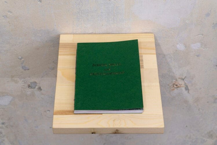 Also in the sphere of recovery is the work Echoes, Spells, and Disenchantment, which adds a reflective dimension to the loss of attention and interest people show towards their own legends and history. This becomes a possible way of saving what is on the verge of being forgotten – a call to the collective responsibility of preserving and reinterpreting memory. The work, developed as a publication accompanied by a sound fragment, starts from the story of the people of Șona, a village in Brașov County, where fragments of myths, legends, and local conspiracy theories, researched during the artist’s trip, turned out to have been distorted by recent history and the influence of contemporary mass media. To clarify this vague and overlaid image, the artist turned to artificial intelligence (AI) to facilitate a collective form of memory, modeled using fragments of information and images collected from Șona. Thus, it presents a perspective between fiction and reality that transcends the known past—in a material that speaks about destiny, the passage of time, the circularity of history, and human nature; a reflection between the death of tradition, history, and the need to preserve them.