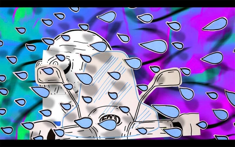 But there is no way of being good. This text is obviously written from the perspective of not being on the delivery bike, like most of the other texts criticizing the exploitation going on in businesses like food delivery. And despite sounding so terribly moralizing, it should be read in a light way like the video Cola and the Chips. I wrote in other instances about s.a.b.a.’s works and how they play with the inevitability of joining the large global platforms, even when you try to criticize the business models and philosophies behind them. Since most of us are somehow part of this – willingly or not –, it is easy to accept our weakness towards these large-scale industries and networks built around them. Many will respond that they refuse to join them, and I am happy if that resistance is actually possible for as many as there will be claiming this. But I rather turn to the negative thoughts of feeling guilt at the doorstep, deciding for comfort because one feels like having suffered all day from another job. Cola and the Chips does not leave us with any of these thoughts, we only come back to them if we had them before. The video can let the “clinamen” exist, the thought that we will never bridge the differences in background and experience, and which we can also not fill this with guilt or empathy. And even though s.a.b.a. don’t make it so explicit in this video, again they participate in the spectacle of media attention to draw attention to something so intrinsically part of it, that in the end it might go unnoticed. They pull the drivers into a music video and leave the moral judgement open. The lyrics of Sneha’s song at times wail like a siren, alarming us to act. But we know – and I hate using this all-encompassing “we” here, in spite of a better way to frame a circle of people who would agree with this. The beauty of this video is to accept the weakness in watching the footage and animations as a reference to the invisible and yet so present situation of gig workers, without the moral imperatives. Within a realm where people mostly agree on the criticism, there is no need for a text like this one, so I wrote it to say that this artwork probably will not change anything – as so many works before did not. But I am stuck with the thought of accepting one’s weakness, one’s moral deficiency, and still wanting to change things. Maybe this has to start with a music video, maybe from one’s lounge-y chair while the pizza delivery is coming and at a time when none of the interlocutors of that annoying discussion weigh in their arguments without being able to contribute to change and respect in their proximity. Just let them eat cola and chips!