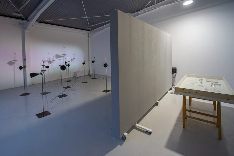 A full, abrasive, continuous sound that disrupts both background noise and attention, but which allows the coexistence of sound flows from different origins, cracks a white space separated from the apparent outside world by a transparent soundproofing – a glass wall that lets you look out, but not hear what might interfere from beyond this boundary. An auditory installation dominates the experiential space in a potential sound hierarchy. Dispersed structures, composed of coils and capacitors, produce fluctuating sounds when touched, changing the sound nuances as the needle moves over the mineral pieces that “scream,” as the perceptive process is described by Ioana Vreme Moser, the artist who gradually tests a possible relationship with the underlying aesthetic intimacy, rather silent, on a symbolic background. Silent not to the extent of an absence, but to the point of such a natural and almost unifying doubling of the visual environment through the activation of soundscapes. This undifferentiated merging of media occurs as in the case of surfaces, which, through overlapping, although they lose their ability to arrange all their layers, form a new object, coherent through symbiosis.