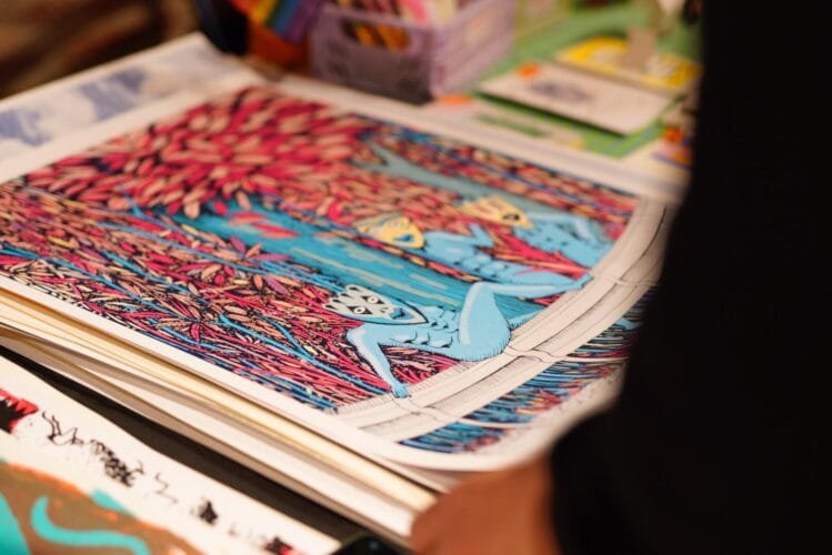 Sit+Read Artist Book Fair 2025 began for the general public on a Friday morning in October, with relatively cool weather and sporadic rain, perfect for a day of sitting and reading, like something out of a postcard. However, I believe that this year’s fair began on the last day of the 2024 fair; during this time, the event has grown in popularity and has become well known among those who print their art and books in studio apartments or small rented rooms, so much so that the end of October feels like a small celebration.