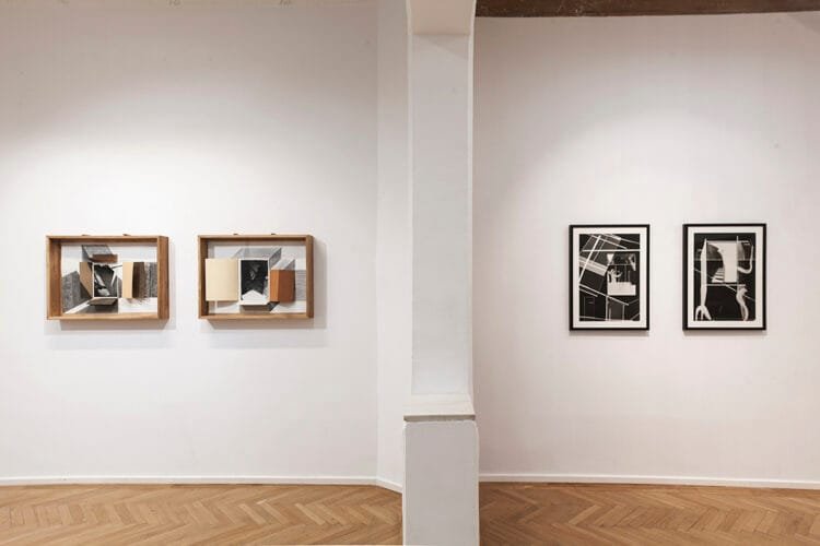 Thus, the artist draws on early self-portraits (from the late 1990s), but also recent everyday photographic impressions, recomposed in/through three-dimensional collages, cardboard, and charcoal drawings, mixing different temporalities and states, brought together in complicated artifacts that encompass, exhibit, or hide the original photographs.