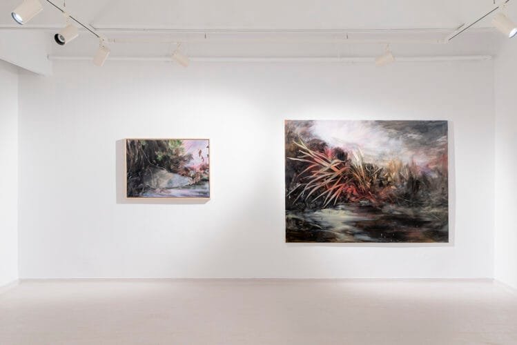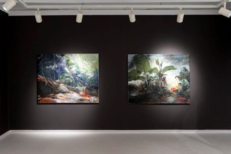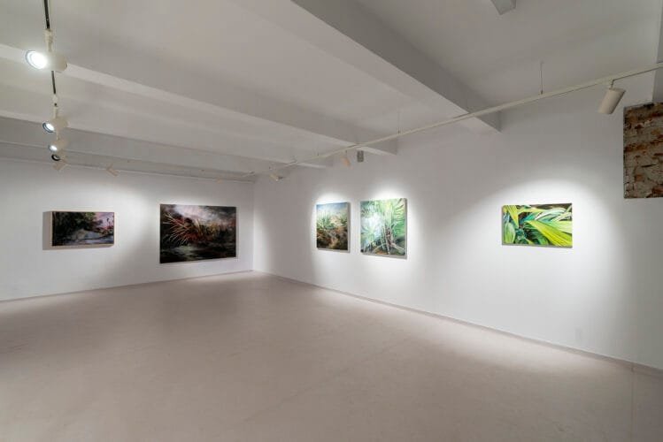 The representational strategies of 19th-century Romantic landscape painting degraded and reduced nature to the role of scenery and a background element, whose sole “function” was to be discovered and conquered by patriarchal society. Similar representational techniques were used in the portrayal of women and the female body, largely mystifying them as muses or dehumanizing them as decorative objects. Gujuman’s works invert this perspective, in which plants become equal partners of the viewer. “The plant is no longer a passive backdrop, but a protagonist, architecture, and myth.” (Stoeac-Vlăduți 2025) All of this can be approached from an ecofeminist perspective, as femininity, the gentle yet determined feminine force, is often associated with nature’s independent and self-organizing system.