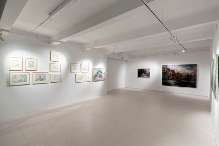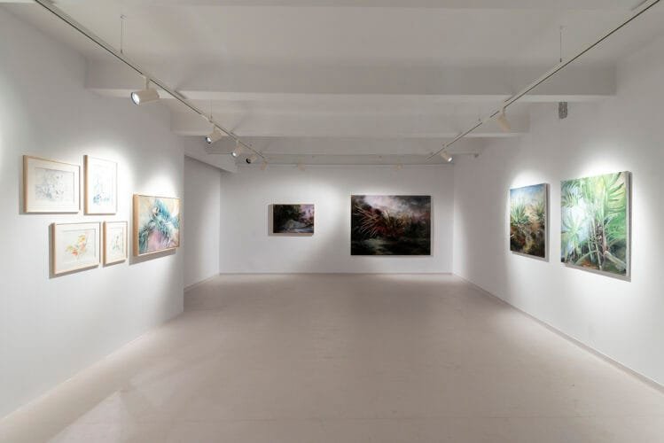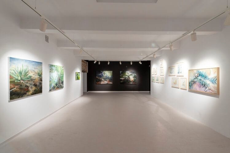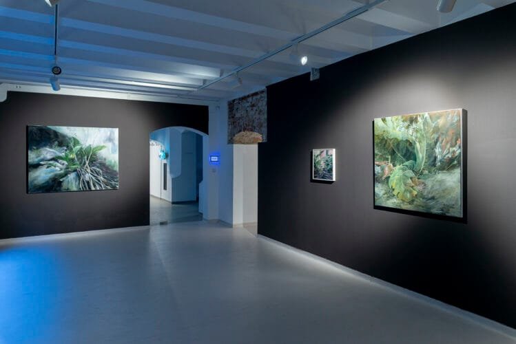 However, the act of disappearance and elimination does not refer to an aggressive invasion seeking to dominate humanity. On the contrary, it symbolizes the gentle and creative power of our planet’s flora, which, like the works in the exhibition, invites us on an immersive journey, drawing us into its mystical and serene world. The works thus offer visitors the soothing catharsis of reconnecting with nature and invite them to engage in a meaningful dialogue about the current situation. The search for a respectful and symbiotic coexistence is the common interest of both human and non-human beings. “In Gujuman’s view, disappearance is neither a loss nor a defeat; it is a form of integration, humility, and, at times, protection. It reflects a way of living in the world that does not impose itself, but participates in it, allowing other forms of life to express themselves, grow, and flourish.” (Stoeac-Vlăduți 2025)[1] This symbolism can also be seen in the “coexistence” of native and exotic plants within the exhibition space, which, by creating a harmonious hybrid environment, underscores the importance of natural diversity.