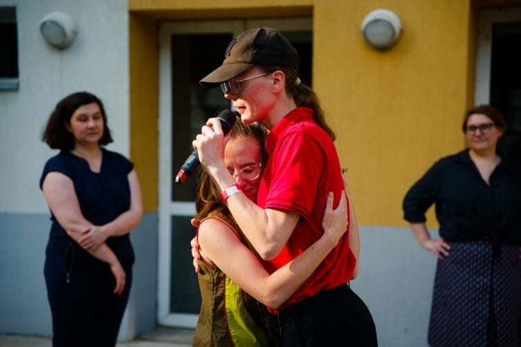 That inward attention was complemented by practices of relational discipline. Krõõt Juurak’s queer tango workshop reoriented partnership work away from spectacle and toward what Krõõt calls the “discipline of joy”: exercises that prioritize how something feels over how it looks, asking participants to “impress yourself first.” The pedagogical logic was deliberately paradoxical, using a codified dance form to teach unlearning, to reassign emotional rules to movement, and to make contact a space for desire and self-knowledge rather than merely performance for others. These ideas were carried into the performance Lesson, presented by Juurak together with Luca Büchler. The piece oscillated between stand-up comedy, therapy session and school, staging the absurdity of authority figures and pedagogical rituals. Humor was central: Juurak’s “teacher” persona made the audience complicit in a situation that felt both familiar and destabilizing, where the point was “not to learn something, but to do time, as is so often the case at school.” Psychoanalytic material from years of sessions was reworked into performance form, producing a layered mix of comedy and confession.