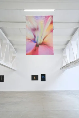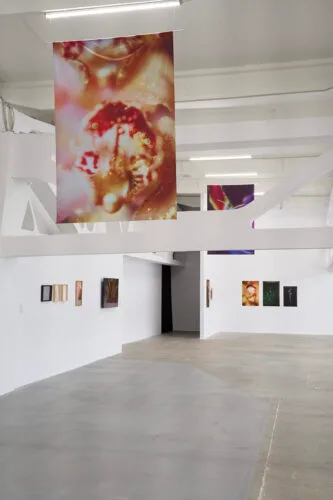 The photographic series mounted on the wall is accompanied by a few velvet veils suspended from the ceiling and by a video, all featuring macro images in electrifying colors, obtained, paradoxically, without any digital manipulation. It is, in this sense, a genuine revolution of the vegetal, an outpouring of force and eroticism, a manifesto of plants that refuse to be treated as colonial resources, exploitable entities, and objects of imperial knowledge.
