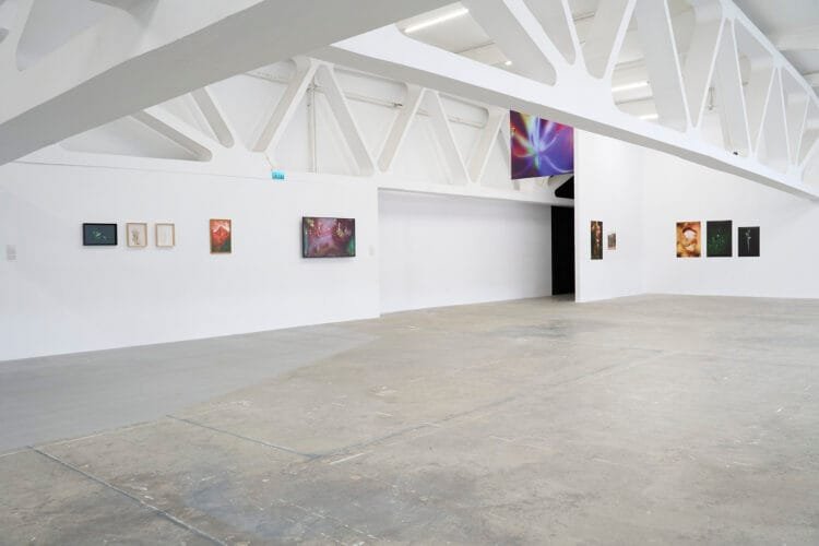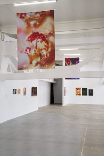 The photographic series mounted on the wall is accompanied by a few velvet veils suspended from the ceiling and by a video, all featuring macro images in electrifying colors, obtained, paradoxically, without any digital manipulation. It is, in this sense, a genuine revolution of the vegetal, an outpouring of force and eroticism, a manifesto of plants that refuse to be treated as colonial resources, exploitable entities, and objects of imperial knowledge.