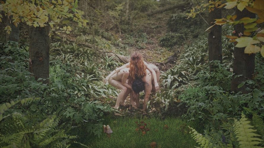 Entitled La Pudeur des Mycètes (2023), this video presents a slow choreography in which three female nudes appear and decompose within a living tropical forest setting. Digital manipulations and the intensity of the colors invoke a vaporwave register, with its inherent melancholy and uncanny eroticism. The sustained yet extremely slow rhythm of movement recalls plants’ capacity to suspend vital processes to avoid expending energy: vegetal torpor. Philosophically explored by Bergson and, more recently, by Michael Marder, this phenomenon of vital latency can be read both as an anti-capitalist manifesto against all “fast” tendencies in society and art, and as an invitation to probe the complexity and nonlinearity of organic time. In this sense, the work recovers the non-quantitative dimension of time from the rhythm of breathing or of cell division, from the infinite slowness and perseverance of mushroom growth, as well as from the extension of the mycelium.