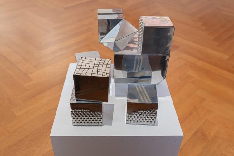 The first three rooms are dedicated to the works of the 111 Group (Ștefan Bertalan, Roman Cotoșman, Constantin Flondor), and on the walls of the first roomwe see the abstract-geometric explorations that preceded their emblematic works of optical art. Two of which are present here. Made of slatted glass, one belongs to the museum and the other is part of Flondor’s personal collection (Undulating Mirage from 1968).