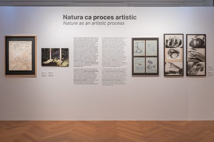 Thus, we enter the exhibition part dedicated to Sigma, with a radical change in artistic practice, oscillating between preserving artistic individuality and diluting it through joint efforts and work with students. The exhibition continues chronologically, highlighting different key moments in the group’s career, as well as major themes they addressed: the “Art and Energy” exhibition at the New Gallery in Bucharest, 1974; the installation Inflatable Structures exhibited at the UNESCO Fine Arts Week, Bastion Gallery, Timișoara, 1974; geometric structures (1972-1976); nature as an artistic process; Sigma pedagogy.