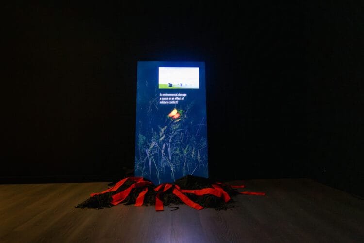 The exhibition was set between the two major focal points of current affairs – the increasingly clear ecological threats and the resurgence of armed conflicts. This presents a unique vision of the artists’ approach to ecological themes through the way these two subjects intertwine in their work.