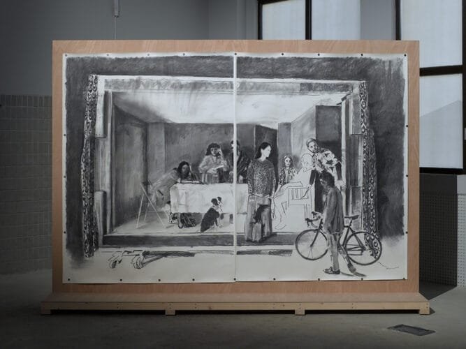 At other times, the references are harder to access for those outside a specifically defined cultural area. I’m thinking here of the wooden refrigerator, painted on the front, containing only milk and eggs—as we can see through the alarmingly open door in the installation “As I walked out one evening. After a poem by W.H. Auden” (2025). This piece alludes to a very particular context: the shortage of meat in the years before the fall of the Iron Curtain.