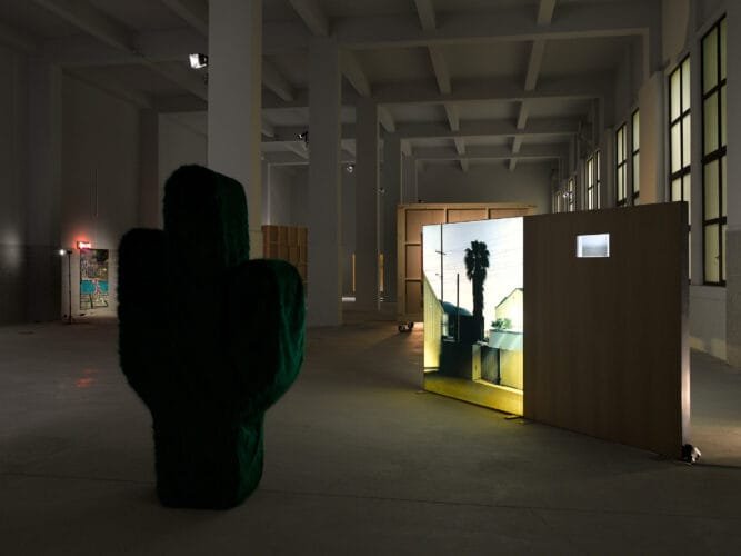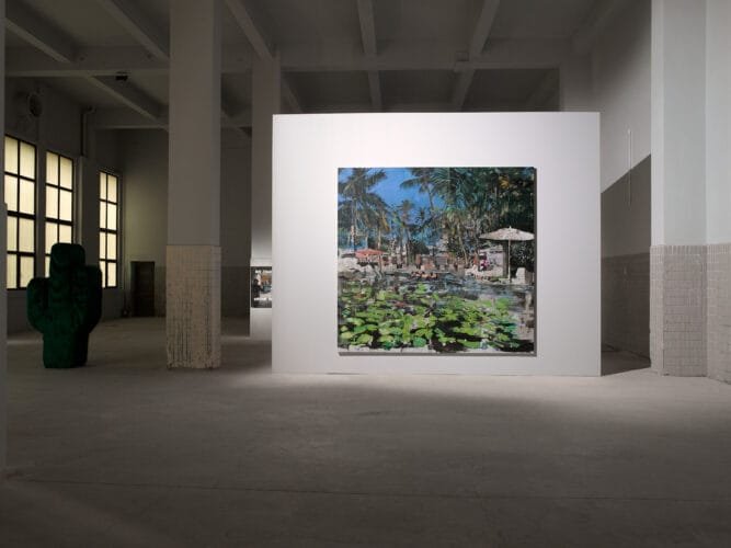 At the same time, by adopting this title, the text also highlights another recurring feature in Bercea’s work: his generous engagement with literary sources that infuse his artistic practice. In this case, together with curator Tevž Logar, the artist reinterprets the title of a well-known play by Eugène Ionesco, New Tenant, to which he adds the grunge-chic phrase, Sunshine Noir. Sunshine Noir being a reference to a neo-noir sub-genre, a reverse neo-noir in fact, spectral, solar and superficial.