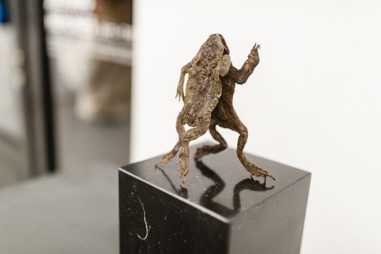 Inspirat de basmul Prințul broscoi, Hubert Hasler asamblează pe un piedestal două broaște care se sărută, sugerând din titlul Beauty never dies că frumusețea nu are un sfârșit. Morala din spatele poveștii evidențiază puterea iubiri în față perfecțiunii și a viziunii societății. Frumusețea este abstractizată în estetică urâtului, din dorința de a prezenta un ideal de frumusețe generat de inteligența artificială. Artistul, în această lucrare, explorează contrastul între frumusețea perfectă și imperfecțiunile fizice, sugerând că aceste defecte ar putea împiedica realizarea unei iubiri desăvârșite. Totuși, în ciuda acestei viziuni, personajele sculpturale, deși nu se încadrează în tiparele tradiționale ale frumuseții, trăiesc o iubire profundă și o împlinire sufletească autentică. Tehnica utilizată, mumifierea, sugerează procedeul de conservare al corpului. Hubert reinterpretează tehnica, creând două broaște ale căror inima pulsează viață în corp și transmite sentimente profunde, exprimate prin intermediul gestului intim expus: sărutul. Susținerea iubirii se realizează cu ajutorul piedestalului care surprinde triumful iubirii și afișarea sentimentelor în fața societății.
