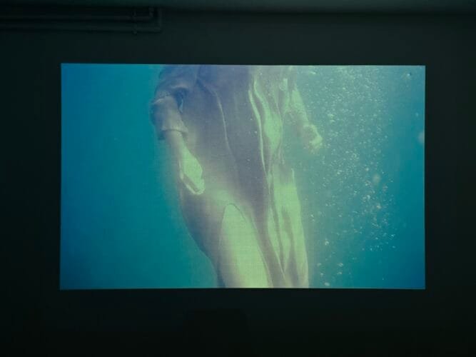 To achieve a weightless state sugerează la prima vedere o stare de meditație și de liniște interioară. Stabilind o punte de conexiune între titlul acestei lucrări și conceptul expoziției, observăm că artista Isidora Krstic trăiește aceste senzații datorită parcurgerii procesului de evitare al amintirilor.