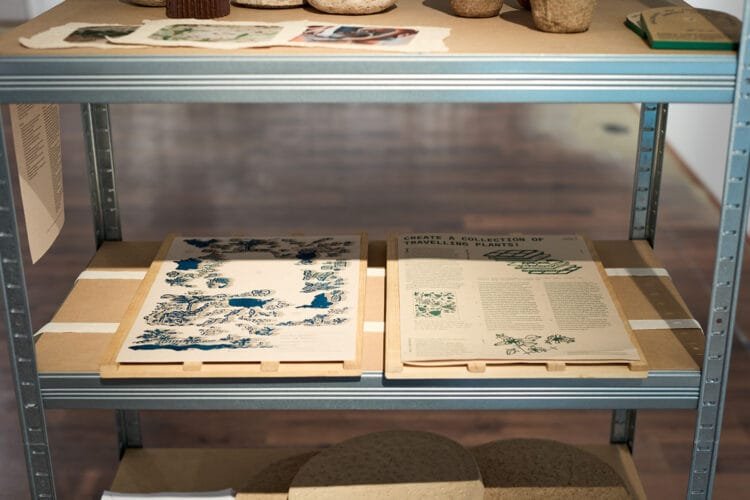 Apoi, prin prisma peisajelor antropocene, artiștii ne invită să luăm în considerare spațiile în care semnele industrializării, ale schimbărilor climatice și dezechilibrului ecologic sunt întipărite în mediul înconjurător. Această tendință este evidentă în lucrările colectivului Krater, un grup de designeri, arhitecți și ecologiști sloveni care au transformat un spațiu urban „sălbatic” și neglijat mult timp în propriul lor laborator, perfect pentru explorarea rezilienței ecologice și a modalităților sustenabile de urbanism. Ei lucrează la reconstrucția și refolosirea materialelor, în special a speciilor invazive de plante, pentru a regândi rolul naturii în regenerarea urbană. Ansamblul lor de lucrări arată că rolul naturii ca subiect al cercetării umane este profund legat de sistemele de putere și dominare. Dorința de a observa, clasifica și stăpâni lumea naturală — fie prin ierbare botanice, grafice taxonomice sau colecții muzeale — reflectă impulsul de impunere a ordinii și de afirmare a controlului. De la extragerea de către coloniști a plantelor care au remodelat ecosisteme și economii la introducerea de specii invazive în timpul expansiunii imperiale, actul de studiere a naturii a reflectat adesea sistemele de exploatare. Plantele invazive precum troscotul japonez scot în evidență istoriile complexe ale deplasării și rezilienței codificate în cadrul narațiunilor ecologice. Troscotul, cândva un simbol al perturbărilor ecologice, devine un material pentru fabricarea hârtiei și o metaforă a adaptării, iar ierbarele pe care le vedem expuse nu urmează tradițiile Iluminismului în prezentarea categorizării științifice a plantelor și a fructelor lor, ci ne permit să aflăm povestea călătoriei unei plante din mediul său natal până la apariția sa în ecosistemul nostru local. Aceste materiale, cum ar fi rezultatul muncii unui vierme de mătase eri, adesea respinse ca fiind invazive sau indezirabile, devin esențiale pentru o poveste despre reziliență și adaptare. Din păcate, la fel ca multe alte organizații colective cu utilitate socială, și acestea sunt pe cale de dispariție.