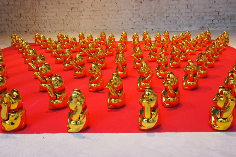 Timp de 22 de zile, începând cu 28 august, magazinul Musette Kube găzduieşte 100 de pisici mecanice chinezeşti, care îşi mişcă desincronizat labele stângi.