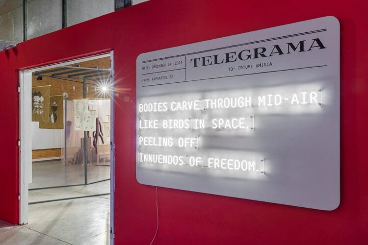 „Ar putea muzeul viitorului să se transforme într-o formă de narațiune socială?” este una dintre întrebările Apparatus 22, prezentă în instalațiile colectivului artistic,pe care mi le-am tot repetat în minte, alături de „Ce s-ar întâmpla dacă strategiile de culturism ar modela un muzeu queer?”. Acestea pun în evidență nevoia unui dialog mai mediat în arta contemporană, o practică esențială pentru colectivul artistic Apparatus 22 încă de la începuturile sale, uneori prin numeroasele iterații ale seriei Positive Tension (in the air). Poate că, în contextul ascensiunii extremei drepte și al instrumentalizării drepturilor LGBTQ+ pe scena politică, acest lucru este acum mai urgent ca niciodată. Totodată, se reflectă și importanța de a lua în considerare propriile noastre corpuri în cadrul corpului instituțional Leviathan, fie ca lucrători în domeniul artei, fie ca vizitatori, cu grade de separare nuanțate, până la punctul de dizolvare a granițelor sau membranelor dintre noi.