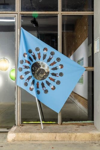 Date fiind obsesiile personale și lecturile recente, mă tot întorc la gânditorii Axel Honneth și Jacques Rancière și la modul în care aceștia definesc aspectele vizibilității sociale sau lipsa acesteia. Potrivit lor, cea din urmă constituie o lentilă critică prin care excluderea și opresiunea pot deveni recognoscibile. Ce alegem să vedem? Ce alegem să ignorăm? Și cum contribuie acestea la o lume care nu acționează și nu gândește în termeni binari? Unele dintre lucrările de artă din expoziție se află în mod decisiv la acest prag, între distanță și disonanță, unde realitatea este abstractizată la limita a ceea ce poate fi politic, social, uman de înțeles și suportabil. Cele trei steaguri atârnate la fereastra spațiului expozițional, sub titlul Everything at a distance becomes abstraction (tot Apparatus 22), prezintă mai multe siluete care privesc spre scene de distrugere teribilă, ca o mică mulțime de personaje din tabloul lui Caspar David Friedrich Wanderer above the Sea of Fog, dispuse în diverse modele și geometrii. Pasivitatea observatorilor și detaliile zonelor de violență anulează simbolismul naționalist al steagului și scot în evidență o relație incomodă între a fi martor și a fi implicat în ororile lumii contemporane.