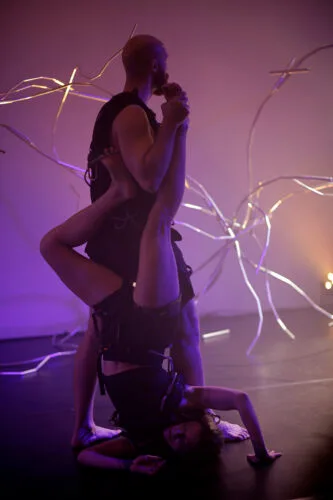 Am construit limbajul coregrafic pornind de la conceptul de interexistență, un concept din gândirea budistă, potrivit căruia nimic nu are o existență de sine stătătoare, independentă de alte entități. Am abordat acest concept printr-o schimbare de perspectivă și de percepție care ne permite să înțelegem fiecare element ca pe o parte esențială și definitorie a întregului. Am integrat în limbajul de improvizație această sensibilitate care percepe și generează legăturile dintre toate lucrurile, un mod de expresie ancorat în conexiunea cu celălalt, cu scena, cu muzica și cu întregul performance.