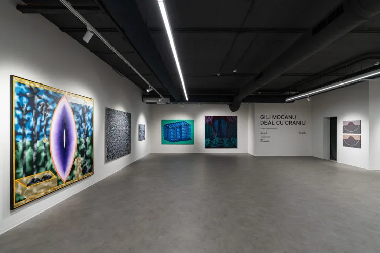 Impresia aceasta, a unei vietăți pentru care „acvariul” spațiului de expunere este neîncăpător, mă copleșește și acum, după vizitarea mini-retrospectivei „Deal cu craniu”, curatoriată de Mihnea Mircan, un partener de dialog de cursă lungă al artistului, expoziție orchestrată de Galeria Ars Monitor din București, condusă de Silviu Pădurariu și Mia Munteanu, și adusă la Timișoara în spațiul Pavilionului ISHO. Picturile expuse acum trasează un arc peste timp și ne arată un Gili alcătuit din mai mulți artiști, toți râvnind la cucerirea, bucată cu bucată, a unui nou teritoriu pictural. De la matricea formatoare a unui câmp vizual definit textual, Consoană și vocală, 2006, la picturile arhetipale ale mijlocului anilor 2000, până la cele mai recente creații precum Revera, 2020-2024, toate picturile expuse acum definesc câte un drum pe care Gili s-a aventurat nonșalant, fără temerile cuceritorului pentru care victoria înseamnă stabilitatea egoului. Gili se aruncă în abisul creației fără plasă de siguranță și fără așteptări festive, căutând nu doar creatorul absolut, ci și acel Hermes pierdut, care a stat la baza primelor creații ale umanității și care face legătura dintre pământ și transcendență, îndemnând la tăcere și oprind zgomotul cotidian.