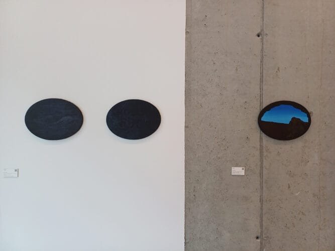Suzana Dan, prin tablourile Cerul devine mai mic – și mai periculos / Nu este niciodată destul timp, traversează spectrul neutru și, într-un final, atinge lumina regăsită în cerul albastru, aducând o urmă de identitate.