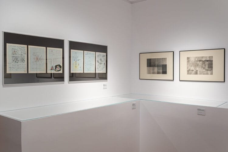 Cea de-a doua sală-cabinet este dedicată schițelor pregătitoare pentru alte lucrări din expoziție sau foi din caiete de schițe alături de o fotografie (din acea perioadă) a fiecărui artist și o lucrare a lui Flondor (Organizarea spațiului, 1967) ce se joacă cu suprapunerea sticlei și hârtiei, amintind de La mariée mise à nu par ses célibataires, même a lui Duchamp.