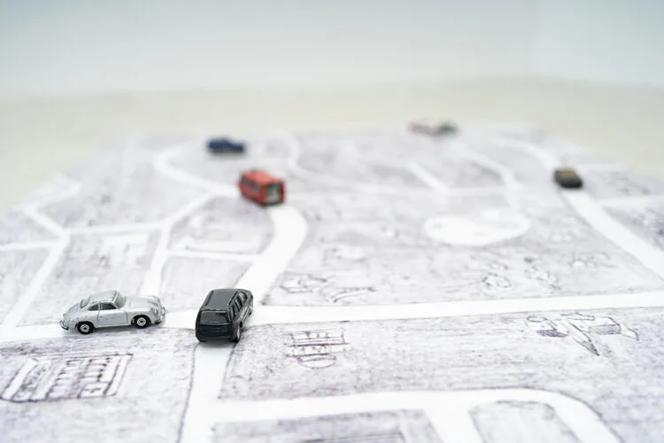 Matei Toșa transpune imaginile cotidiene ale orașului în dimensiune grafică și invită publicul să interacționeze cu lucrarea Nostalgic Kingdom. În cadrul cercetării, artistul a realizat o succesiune de transpuneri ale hărții cartierului, care au fost mai apoi transferate pe o suprafață imprimată textil. Lucrarea are un caracter ludic, atât prin explorarea tactilă prin joc cu intervenția mașinuțelor de jucărie, cât și prin poziționarea pe podea, amintind de jocurile din copilărie. Într-o logică diferită, lucrarea Acțiune 03 amplasată în proximitate, reflectă o perspectivă critică asupra prezenței vehiculelor în spațiul public. Aceasta problematizează modul în care calitatea mediului urban este afectată de prezența sufocantă a mașinilor, intervenția artistică conturând astfel o reevaluare a raportului dintre om, mașină și cămin.